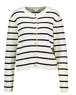 Ce cardigan à manches longues et col rond pour femme se porte aisément par-dessus un tee-shirt ou un haut. Le tricot en viscose et polyamide lui confère une texture souple qui offre une grande liberté de mouvement. Le motif rayé blanc et bleu marine apporte un effet de fraîcheur. La fermeture boutonnée permet de l’enfiler et de le retirer facilement.