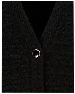 Ce gilet noir pour femme présente une encolure en V et se ferme à l’aide de quatre boutons sur le devant. Les manches longues et les larges bords-côtes garantissent une coupe confortable. Grâce à sa couleur unie, le gilet se marie facilement avec différentes tenues. Idéal à porter comme couche supplémentaire lors des journées plus fraîches, pour garder bien chaud.