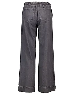 Deze grijze damesbroek is gemaakt van 100% katoen en heeft een rechte, wijde pijp. De stevige denimstof zorgt ervoor dat de broek prettig zit en lang meegaat. Dankzij het trekkoord in de taille kun je de broek makkelijk verstellen voor extra comfort.