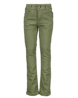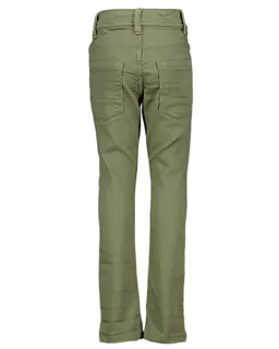Groene jongensbroek gemaakt van jog denim. De broek heeft een klassieke vijfzakkenstijl en is voorzien van een knoopsluiting aan de voorkant. De tailleband heeft riemlussen. Door het ontbreken van opvallende prints of versieringen is deze broek makkelijk te combineren met verschillende bovenkleding. Geschikt voor dagelijks gebruik en biedt bewegingsvrijheid dankzij de soepele stof.