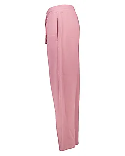 Deze roze damesbroek heeft een elastische tailleband met koord, waardoor je de pasvorm makkelijk aanpast en hij prettig blijft zitten. De mix van katoen en polyester voelt zacht aan, zodat je comfortabel kunt bewegen. De rechte pijpen vallen los om je benen, waardoor je veel ruimte hebt tijdens het dragen, bijvoorbeeld thuis of tijdens een rustige wandeling.