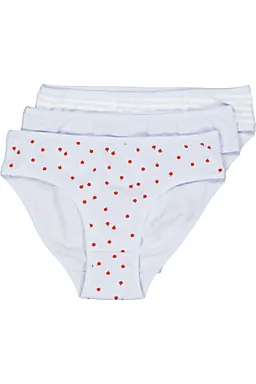 Deze set bestaat uit drie slips voor meisjes. Ze zijn lichtblauw, met één slip met kleine rode stippen, één effen en één met fijne strepen. De slips zijn gemaakt van katoen, waardoor ze zacht aanvoelen en prettig dragen. De elastische tailleband zorgt ervoor dat alles goed op zijn plek blijft, zodat je je vrij kunt bewegen tijdens het dragen.