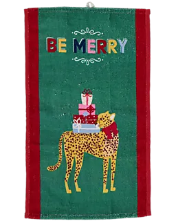 Deze zachte groene gastendoek met kerstprint heeft een afmeting van 10 x 25 cm. Door het handige ophanglusje hang je hem makkelijk op in de keuken of badkamer. Ook neemt het veel vocht op, waardoor de doek ideaal is voor het afdrogen van je handen of het aanrecht. De rode randen geven een extra feestelijk accent.