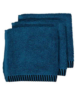 Deze blauwe gezichtsdoekjes zijn geschikt voor dames en heren. Ze hebben een praktische afmeting van 15 bij 15 centimeter en zijn verpakt per drie stuks. De doekjes hebben een zachte structuur en een effen dessin met een subtiel gestreepte randafwerking. Hiermee kun je eenvoudig je gezicht reinigen of opfrissen. De set is handig voor dagelijks gebruik in de badkamer.