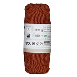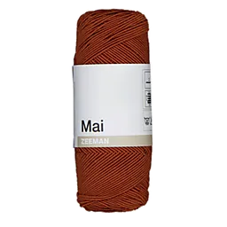 Dit roestbruine Mai haakgaren bestaat uit 55% polyester en 45% katoen. De draad is stevig en voelt prettig aan tijdens het haken. Eén bol van 100 gram is geschikt voor kleinere haakprojecten of om je voorraad aan te vullen. De aanbevolen haaknaald is 2 mm, waarmee je fijne details kunt maken. Op een proeflapje van 10 x 10 cm haak je 12 steken en 21 toeren. Toch een bol te veel aangeschaft? Kom binnen een jaar terug met de aankoopbon. Dan krijg je gewoon je geld terug.