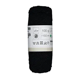 Dit zwarte haakgaren is gemaakt van 55% polyester en 45% katoen. De draad is stevig en blijft goed in vorm tijdens het haken. Met 100 gram heb je 150 meter garen, voldoende voor diverse haakprojecten. Geschikt voor een haaknaald van 2 mm. Een proeflapje van 10 x 10 cm bestaat uit 12 steken en 21 naalden. Toch een bol te veel aangeschaft? Kom binnen een jaar terug met de aankoopbon. Dan krijg je gewoon je geld terug.