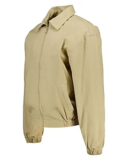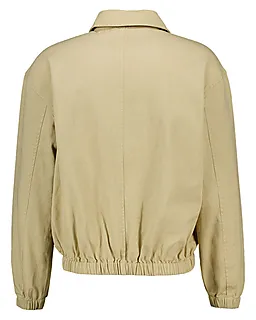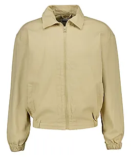 Deze taupekleurige herenjas is gemaakt van 100% katoen in stevige twill, waardoor de jas sterk aanvoelt. De lange mouwen hebben elastische boorden, zodat ze goed aansluiten en prettig zitten. Met de rits aan de voorkant doe je de jas makkelijk open en dicht. Door de effen kleur combineer je deze jas eenvoudig met verschillende outfits.