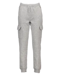 Deze joggingbroek voor jongens in de kleur grijs heeft een elastische tailleband met trekkoord. De broek heeft twee steekzakken en aan de zijkanten twee zakken met klep. Door de geribde boorden aan de pijpen blijft de broek goed zitten.