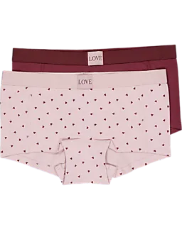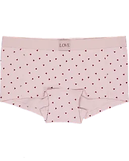 Deze set bestaat uit twee Lara boxers voor dames in paars en lichtroze met kleine hartjes. De brede, elastische tailleband met het woord 'LOVE' zorgt ervoor dat de boxers stevig zitten zonder te knellen. Dankzij de zachte, ademende stof van katoen met een beetje elastaan voelen ze prettig aan, zodat ze comfortabel blijven onder je kleding.