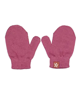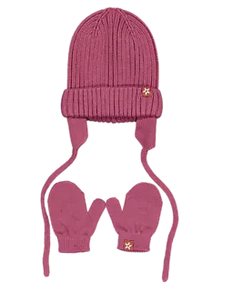 Deze set bestaat uit een gebreide muts en wanten voor baby's in een rode kleur. De muts is voorzien van lange koorden om vast te maken onder de kin en heeft een omgeslagen rand. Op zowel de muts als de wanten is een klein labeltje zichtbaar. De ribstructuur zorgt voor een warme en comfortabele pasvorm voor je kind tijdens koudere dagen.