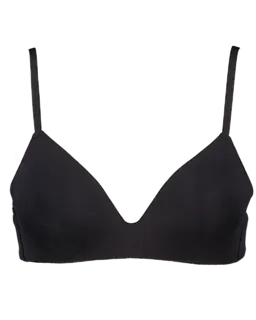 Deze zwarte damesbh is beugelloos en gemaakt van gladde, zachte microstof. Door de lichte vulling voelen de voorgevormde cups zacht aan en geven ze een natuurlijke vorm, zodat de bh prettig zit. De smalle bandjes vallen bijna niet op onder je kleding, waardoor de bh goed te dragen is onder allerlei tops of T-shirts.