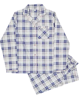 Deze damespyjama is gemaakt van 100% katoen met een zachte flanellen stof. Het model bestaat uit een shirt met knoopsluiting, lange mouwen en een borstzakje. De bijpassende broek heeft een elastische tailleband en rechte pijpen. Het geruite dessin in wit en blauw geeft de pyjama een klassieke uitstraling.