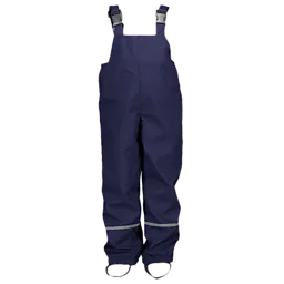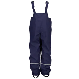Deze donkerblauwe regenbroek heeft verstelbare schouderbanden, zodat je hem makkelijk kunt aanpassen aan jouw lengte. Het lange model en de stevige stof houden je goed droog tijdens een regenbui. Onderaan de broekspijpen zit een reflecterende band, waardoor je beter zichtbaar bent wanneer het schemert. Dit model is geschikt voor jongens en meisjes.