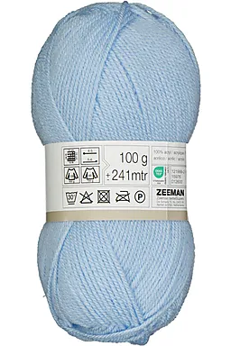 Dit lichtblauwe Royal breigaren weegt 100 gram en heeft een lengte van 241 meter, waardoor je lange stukken kunt breien zonder steeds te moeten aanhechten. Een proeflapje van 10 x 10 cm bevat 18 steken en 28 naalden. Dit garen is geschikt voor breinaalden van 4-5 mm en haaknaalden van 5-6 mm.