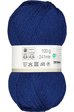 Dit donkerblauwe Royal breigaren is geschikt voor allerlei brei- en haakprojecten. Een bol weegt 100 gram en heeft een lengte van 241 meter, waardoor je ruimschoots kunt werken aan grotere ontwerpen. Een proeflapje van 10 x 10 cm bevat 18 steken en 28 naalden. Het garen is te gebruiken met breinaalden van dikte 4-5 en haaknaalden van dikte 5-6.