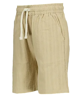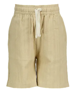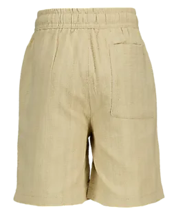 Deze beige jongensshort is gemaakt van 100% katoen en heeft een geweven structuur, waardoor hij stevig aanvoelt. De korte broek heeft een elastische tailleband met een trekkoord, zodat je hem makkelijk aantrekt en hij comfortabel zit. De effen kleur zorgt voor een rustige uitstraling. De zachte, ademende stof voelt prettig op je huid, waardoor hij fijn is op warme dagen.