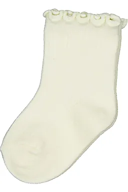 Deze set van vijf sokjes voor baby heeft zachte pastelkleuren zoals paars, roze en crème, zodat je ze makkelijk combineert. De bovenrand heeft een golvende afwerking die soepel meerekt, waardoor de sokjes prettig en aansluitend zitten. Ze zijn gemaakt van katoen, polyester en een beetje elastaan, zodat de stof zacht aanvoelt en licht meegeeft tijdens het dragen.