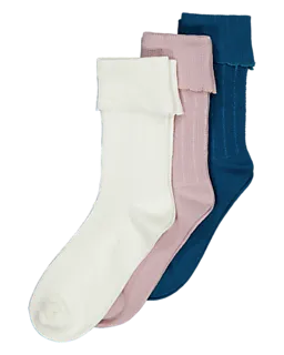 Deze set bestaat uit drie paar sokken voor jongens en meisjes, in de kleuren wit, lichtroze en donkerblauw. De sokken zijn gemaakt van 75% katoen, 23% polyamide en 2% elastaan. Ze hebben een omgeslagen boord en een gladde afwerking. Dankzij het zachte materiaal zitten ze comfortabel en zijn ze geschikt voor dagelijks gebruik in verschillende schoenen.