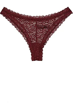 Deze set van twee damesstrings bestaat uit de kleuren lichtroze en donkerrood. De stof bestaat uit kant met een bloemmotief en is licht doorschijnend. De afwerking met elastisch kant zorgt ervoor dat de strings prettig aansluiten op je huid, zodat ze comfortabel zitten onder je kleding. Dankzij de samenstelling met polyamide en elastaan zijn ze soepel en rekbaar.