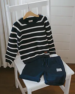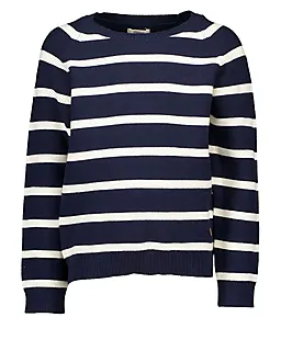Deze jongenssweater heeft donkerblauwe en witte strepen, waardoor hij een rustige look krijgt. De ronde hals en geribde boorden sluiten prettig aan, zodat de trui goed blijft zitten. De stevige gebreide stof geeft je genoeg bewegingsvrijheid. De lange mouwen houden je warm op koelere dagen, waardoor de sweater fijn is voor dagelijks gebruik.