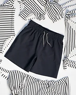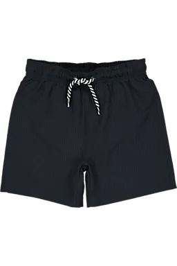 Deze zwarte jongenszwembroek heeft een korte lengte en een elastische tailleband met aantrekkoord. Hierdoor pas je de broek makkelijk aan en blijft hij goed zitten tijdens het zwemmen. De effen kleur geeft een rustige uitstraling. De seersucker stof voelt luchtig aan, zodat je comfortabel kunt bewegen in het water en aan de kant.