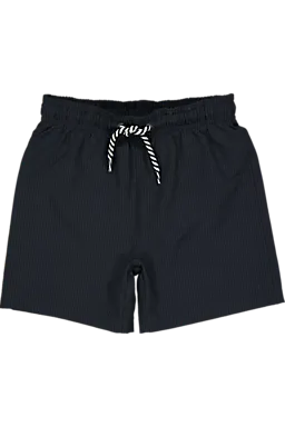 Deze zwarte jongenszwembroek is gemaakt van seersucker en heeft een korte lengte. De elastische tailleband met koord zorgt ervoor dat je de zwembroek makkelijk aantrekt en stevig vastmaakt, zodat hij goed blijft zitten tijdens het zwemmen. Dankzij het effen ontwerp kun je de zwembroek eenvoudig combineren met een T-shirt of slippers op warme dagen.
