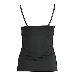 Dit zwarte hemd met cups heeft smalle bandjes en een aansluitende pasvorm. Gemaakt van polyester en elastaan, waardoor het zacht en licht elastisch is. Het effen ontwerp maakt het geschikt om onopvallend onder kleding te dragen. Ideaal voor dagelijks gebruik onder een shirt of trui.