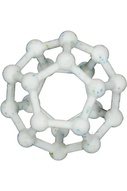 Deze witte bijtring heeft een open, bolvormig ontwerp met meerdere ronde verbindingen. Dankzij deze vorm kun je hem makkelijk vasthouden en pakken, zodat hij handig is bij doorkomende tandjes. Door het compacte formaat neem je de bijtring makkelijk mee.