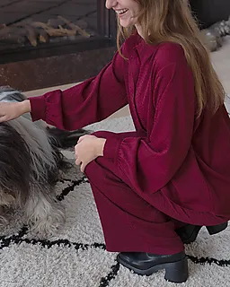 Deze damesblouse heeft een diepe rode kleur en is gemaakt van 98% gerecycled polyester en 2% elastaan. De blouse heeft een kraag, lange mouwen met knoopsluiting bij de polsen en een rij knopen aan de voorkant. De soepele stof zorgt voor een comfortabele pasvorm. Het eenvoudige ontwerp maakt deze blouse geschikt voor verschillende gelegenheden.