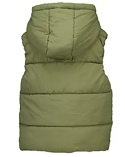 Deze groene bodywarmer is gevoerd en heeft een gewatteerde vulling, waardoor hij je goed warm houdt op frisse dagen. De bodywarmer sluit aan de voorkant met drukknopen en heeft een capuchon, zodat je extra beschermd bent tegen de wind. Dit model is geschikt voor jongens en meisjes. Dankzij het stevige materiaal voelt de bodywarmer comfortabel en praktisch aan.