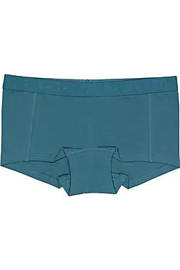 Deze set van twee damesboxershorts bestaat uit de kleuren groen en donkerblauw. Ze zijn gemaakt van een zachte single jersey stof van katoen met een beetje elastaan, waardoor ze prettig aanvoelen en licht meerekken. Dankzij de effen kleuren en aansluitende pasvorm draag je deze boxers comfortabel onder je kleding.