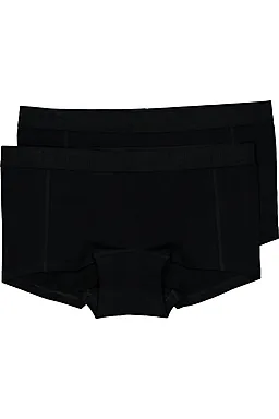 Deze set bestaat uit twee zwarte damesboxers. De boxers zijn gemaakt van katoen met een beetje elastaan, waardoor de stof zacht aanvoelt en prettig meerekt. De aansluitende pasvorm zorgt dat de boxers goed zitten zonder opvallend patroon. De gladde naden zorgen ervoor dat ze comfortabel onder je kleding dragen.