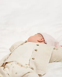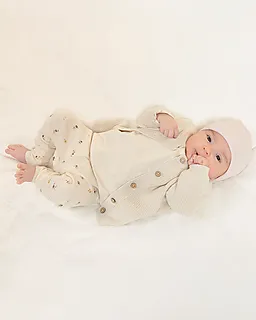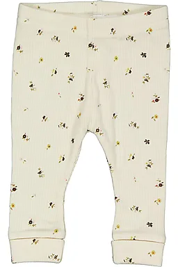 Deze beige babybroek heeft een fijne ribstructuur en een subtiel dessin met kleine bloemetjes in verschillende kleuren. De zachte stof voelt prettig aan op de huid, zodat je baby comfortabel kan bewegen. Dankzij de elastische tailleband is het broekje makkelijk aan en uit te trekken en sluiten de omgeslagen boorden goed aan bij de enkels.