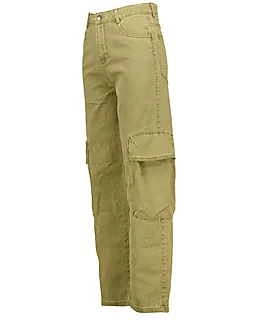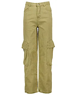 Deze groene jongensbroek heeft lange, rechte pijpen en ruime cargozakken aan de zijkanten, waardoor je kind kleine spullen makkelijk meeneemt. De stevige stof voelt robuust aan, zodat de broek goed geschikt is voor actief gebruik. De sluiting met knoop en rits geeft een vaste pasvorm. De effen kleur maakt het eenvoudig om de broek met verschillende tops te dragen.