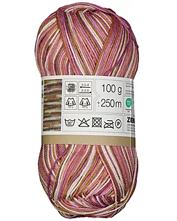Dit Ella breigaren heeft een meerkleurige uitstraling met roze, wit en beige tinten. Een bol weegt 100 gram en heeft een looplengte van 250 meter, zodat je lekker lang kunt doorbreien. Het garen is geschikt voor breinaalden van 3,5 tot 4 mm en haaknaalden van 2 tot 2,5 mm. Een proeflapje van 10 x 10 cm bevat 21 steken en 27 naalden.