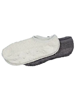 Deze set van 2 dames footies bestaat uit een wit en een grijs paar. De footies zijn gemaakt van zachte feather yarn en voelen comfortabel aan. Dankzij het elastaan sluiten ze goed aan en blijven ze netjes zitten in je schoenen. De antislip nopjes aan de onderkant zorgen ervoor dat je stevig staat op gladde vloeren.