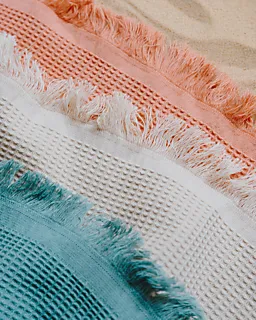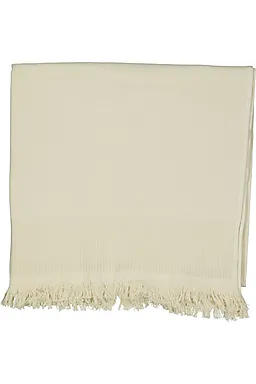 Deze beige hamamdoek heeft een geweven structuur en lange franjes aan de korte zijde, waardoor hij een rustige en natuurlijke uitstraling krijgt. Het ruime formaat van 90 bij 170 centimeter geeft je veel plek, zodat je je makkelijk kunt afdrogen of ontspannen op het strand of in de tuin. De lichte stof voelt soepel aan en vouw je snel compact op.