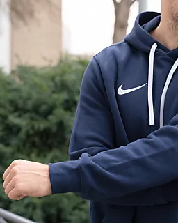 Deze zwarte Nike hoodie voor heren heeft een capuchon met trekkoord, zodat je de capuchon makkelijk strakker of losser maakt als dat nodig is. De buidelzak aan de voorkant is handig om je handen warm te houden of spullen in te bewaren. De zachte mix van katoen en polyester draagt prettig, zodat je comfortabel blijft op frisse dagen.