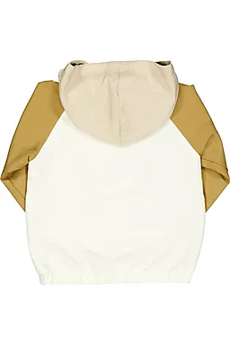 Dit beige babyjasje heeft een capuchon en lange mouwen in een lichtbruine kleur. De rits aan de voorkant maakt het aan- en uittrekken eenvoudig. Dankzij de elastische boorden bij de mouwen en onderkant sluit het jasje goed aan en blijft frisse lucht buiten. De rustige kleuren geven het jasje een tijdloze uitstraling.