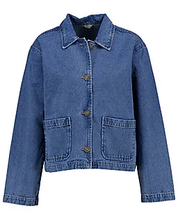 Deze blauwe damesjas is gemaakt van denim en heeft lange mouwen en een kraag. Je sluit de jas makkelijk met knopen aan de voorkant, zodat je hem snel open of dicht doet. De twee grote zakken aan de voorkant geven ruimte voor je spullen, zodat je die altijd bij de hand hebt. Door het stevige katoen draagt de jas prettig.