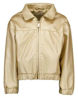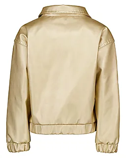Deze gouden meisjesjas is gemaakt van een gladde, licht glanzende stof en heeft een opstaande kraag. De jas sluit eenvoudig met een rits aan de voorkant. Dankzij de elastische boorden bij de mouwen en onderkant sluit de jas prettig aan. Leuk als overjas tijdens de warmere dagen van het jaar, of als vest wanneer het kouder is.