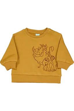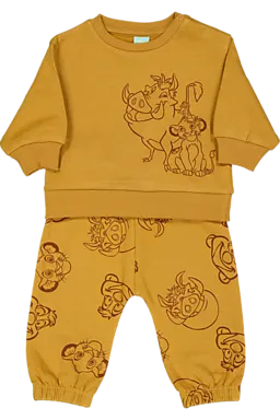 Deze bruine babykledingset bestaat uit een zacht truitje en een broekje met een vrolijke print van bekende Disneyfiguren. De boorden aan de mouwen, pijpen en hals zijn elastisch, waardoor de set goed aansluit en prettig zit. De soepele stof voelt comfortabel op je huid, zodat je makkelijk kunt bewegen tijdens het spelen of liggen.