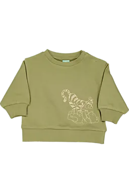 Deze groene babyset bestaat uit een zacht truitje en een lichte broek met elastische boorden. De vrolijke Tigger print geeft het truitje een speelse uitstraling. De broek heeft een dessin met beertjes, waardoor de set er eigentijds uitziet. Dankzij de elastische boorden sluit alles goed aan, zodat het comfortabel zit en je baby zich makkelijk kan bewegen.