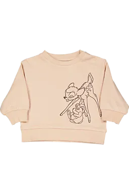 Deze roze babyset bestaat uit een truitje en een broekje met Disney Bambi figuren. Het truitje heeft een ronde hals en lange mouwen, waardoor de armen en het bovenlichaam warm blijven. Het broekje heeft een elastische tailleband en een vrolijke print, zodat het makkelijk aan te trekken is en comfortabel zit. De set voelt zacht aan op de huid.