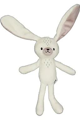 Deze beige knuffeldoek heeft een zachte uitstraling en is afgewerkt met een konijnengezicht en lange oren. Door het formaat van ongeveer 100 bij 75 centimeter is de doek makkelijk vast te houden of te gebruiken als troostdoek. Het eenvoudige ontwerp zonder opvallende patronen zorgt voor een rustige en prettige indruk voor kinderen.