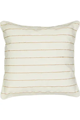 Dit beige kussen is vierkant en heeft een formaat van 45 bij 45 cm. De geweven buitenstof heeft subtiele horizontale lijnen, waardoor het kussen een stevige uitstraling krijgt. Door de combinatie van katoen en jute voelt de stof stevig aan, terwijl de polyester vulling het kussen licht en veerkrachtig maakt. Dankzij de neutrale kleur past het kussen makkelijk in je zithoek.