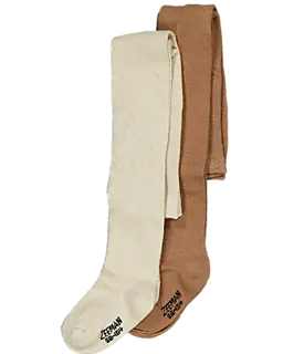 Set van twee maillots voor jongens en meisjes in beige en lichtbruin. De maillots hebben een jacquardstructuur en zijn gemaakt van katoen, polyamide en elastaan. Door het zachte materiaal en het elastaan sluiten ze mooi aan en zitten ze prettig. Geschikt om te dragen onder een rok of jurk op koudere dagen. Handig voor dagelijks gebruik en makkelijk te combineren.