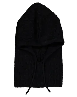 Deze zwarte unisex muts, ookwel bekend als balaclava, is gebreid en heeft een praktische capuchonvorm met een opening voor het gezicht en koordjes om de pasvorm eenvoudig aan te passen. Door het eenvoudige ontwerp en de neutrale kleur is deze hoed geschikt voor tieners. De zachte stof zorgt voor extra comfort en warmte tijdens koudere dagen. Ideaal voor buitenactiviteiten of onderweg naar school.