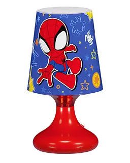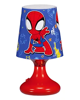 Deze nachtlamp heeft een blauw lampenkapje met een opvallende Spiderman en speelse gele, rode en witte details. De rode voet zorgt voor een vrolijke uitstraling, waardoor je de lamp makkelijk in een kinderkamer plaatst. Dankzij het duidelijke stripfiguurontwerp maakt de lamp de slaapkamer direct gezelliger en is hij eenvoudig te combineren met ander stoer speelgoed of beddengoed.