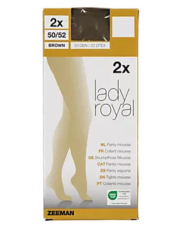 Deze bruine panty is gemaakt van 100% polyamide en is licht doorschijnend door de twintig denier, waardoor je benen egaal lijken onder een rok of jurk. De gladde stof voelt prettig aan en de comfort fit zorgt ervoor dat de panty goed blijft zitten en met je meebeweegt. Je krijgt twee stuks, zodat je altijd een reserve hebt.